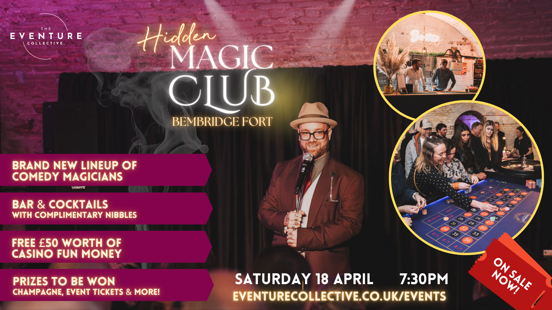 Back by popular demand, The Hidden Magic Club returns with a brand-new show and an extraordinary lineup. Prepare to be captivated by exceptional magicians in a stunning underground setting, as an evening of laughter, mystery, and wonder unfolds. From intimate close-up magic to incredible illusions and masterful sleight of hand, every moment promises to amaze.
